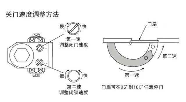 调节闭门器的关门力量也就是调节关门速度,