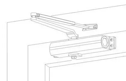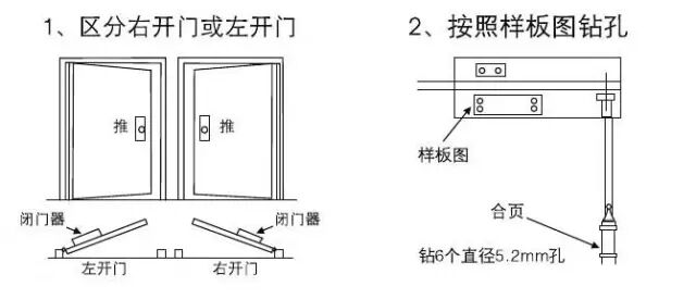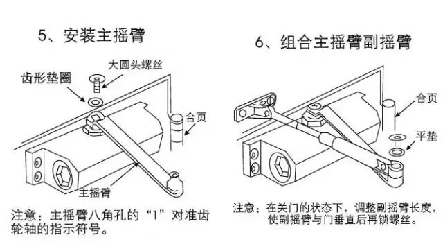 闭门器只能安装在门扇上部靠近铰链一边,机体上无调速螺钉的一端,面向铰链,否则,门将不能开启,若强行开启,则闭门器、门扇和上门框即槽会被破坏,用四个螺钉将机体固定在门扇上,再把杠杆套进齿轴上端,另一端装上帽盖、拧紧紧固螺钉。